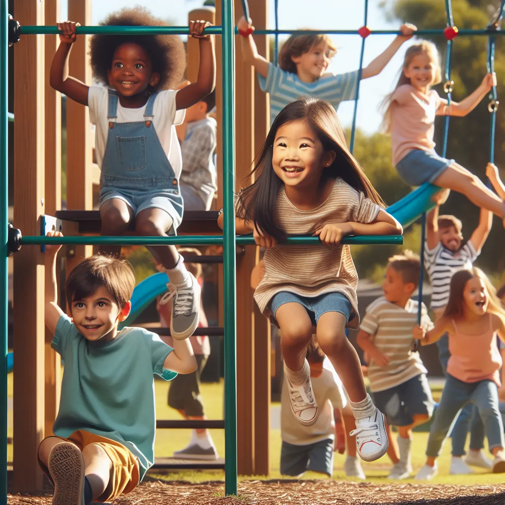 - Укрепление мышц: игры на качелях и турниках помогают укрепить мышцы.